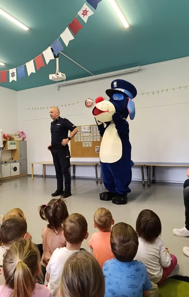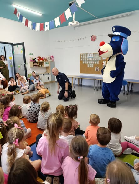 Dzieci z zainteresowaniem słuchały, jak dbać o swoje bezpieczeństwo – nie tylko podczas wakacyjnych zabaw, ale i na co dzień. Rozmawialiśmy o zasadach przechodzenia przez ulicę, o kontaktach z nieznajomymi oraz o tym, dlaczego warto zawsze być widocznym na drodze. ![]()
