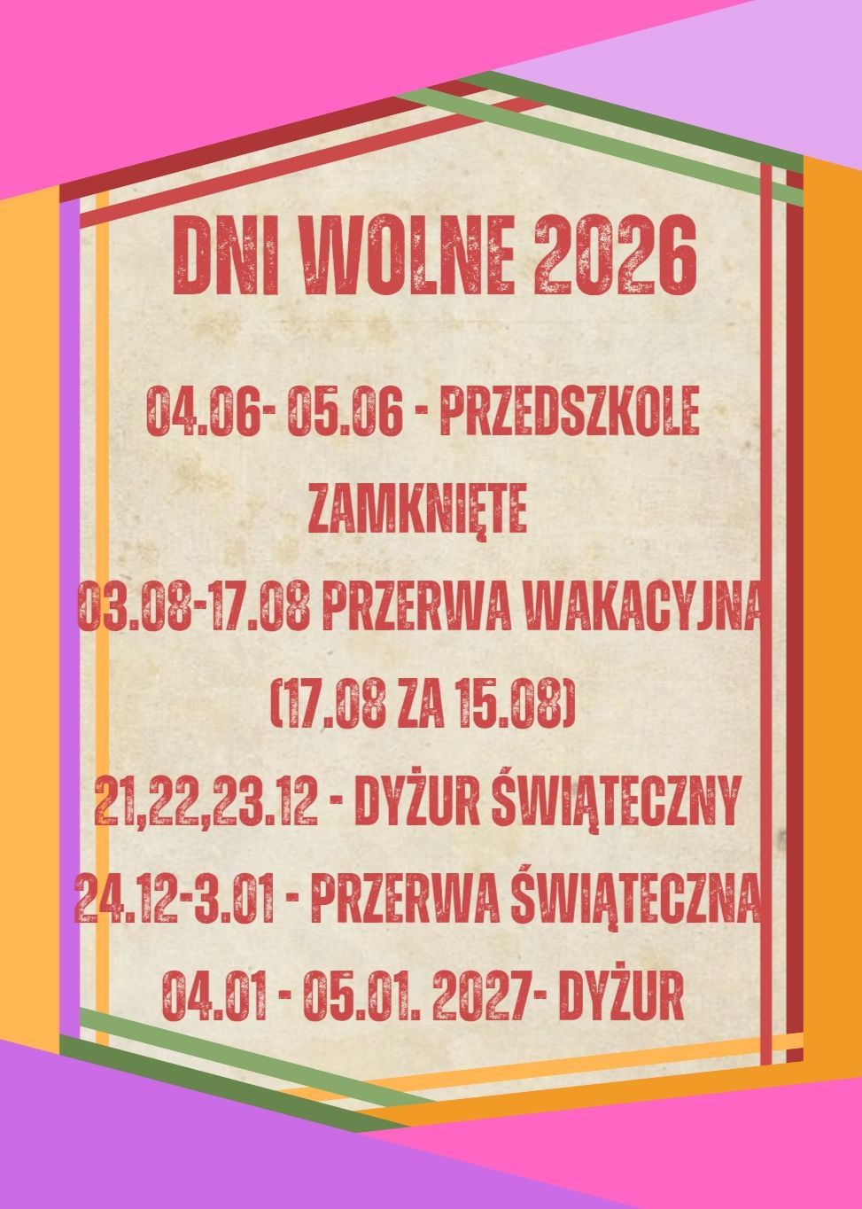 DNI WOLNE W 2026 ROKU