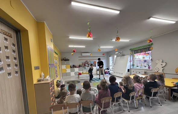 27.03 (czwartek ) odwiedził nas gość. Ze swoim magicznym programem wystąpił prawdziwy iluzjonista. Magik zabrał nas do świata czarów i magii.Dzieci miały możliwość przeżycia czegoś niezwykłego, tym bardziej, że aktywnie uczestniczyły w przedstawieniu. Uczyły się tajemniczych zaklęć, a odważni ochotnicy pomagali mistrzowi w jego pokazie i same czarowały. Wyprawa do tajemniczego świata dostarczyła wszystkim sporo satysfakcji, wiele humoru i radości.