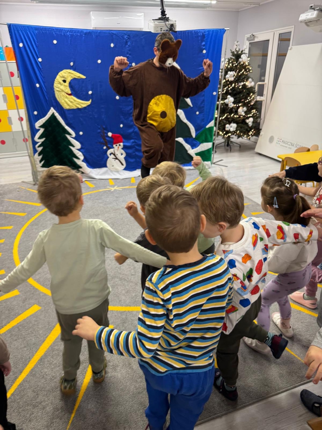 4.12 ( czwartek ) w naszym przedszkolu odbyło się niezwykle magiczne przedstawienie teatru objazdowego pt. „List do Świętego Mikołaja”. Aktorzy wprowadzili dzieci w świąteczny świat pełen radości, muzyki i ciepłych emocji.